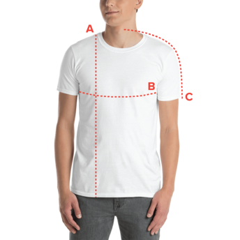Place the end of the tape beside the collar at the top of the tee (Highest Point Shoulder). Pull the tape measure to the bottom of the shirt.