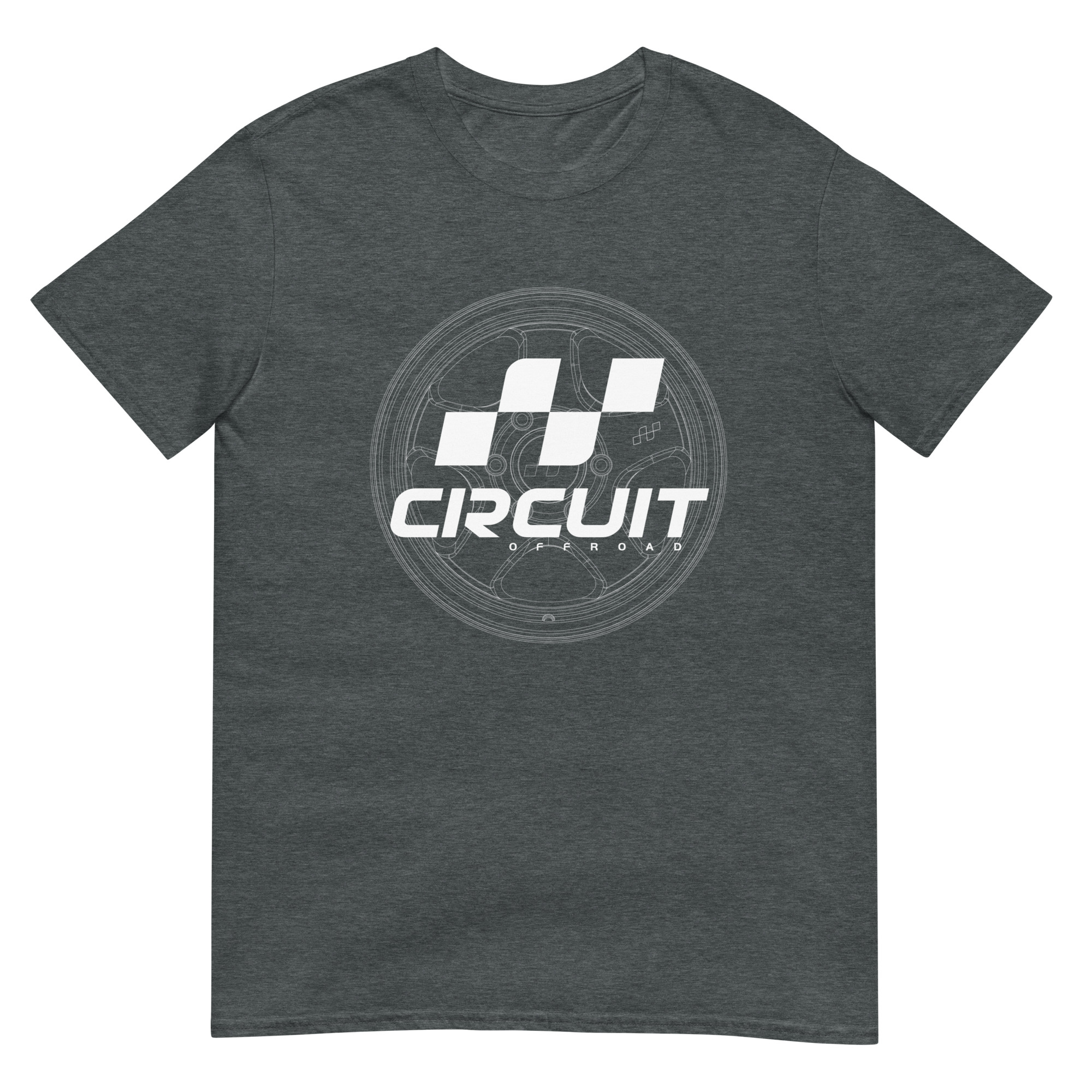 This super soft Gildan 64000 Softstyle® Adult T-Shirt offers a modern classic fit. Features DTG (direct-to-garment) printing that yields bold and vibrant prints, featuring the CAD drawing of the favorite Hayford wheel, and the Circuit Offroad logo on the front. The back of the shirt features a large, centered Circuit Offroad logo.
